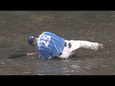 列賽在大雨中進行,當時糟糕的天候仍開打更被球迷稱為「職業甲子園」。