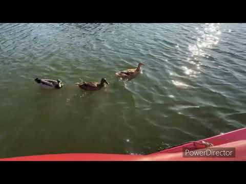老闆給了一杯飼料給我們餵湖中的鴨子,沒想到這個湖裡有超多鴨子,一波又一波的鴨子