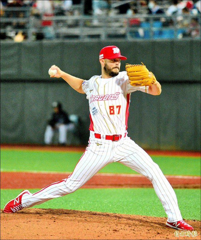 布里悍成為龍隊本季首位拿到勝投的先發投手。(記者王藝菘攝)