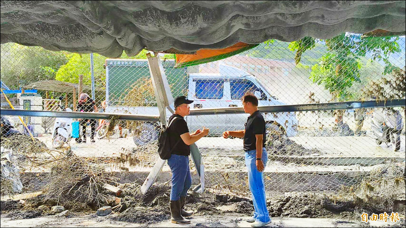 中華職棒大聯盟會長、立委蔡其昌(左)關心光復國中棒球場受災情形。