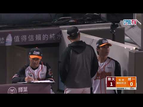 雖然獅隊提出重播輔助判決,要看朱育賢是否先回本壘得分,不過現場重播畫面一直沒有同