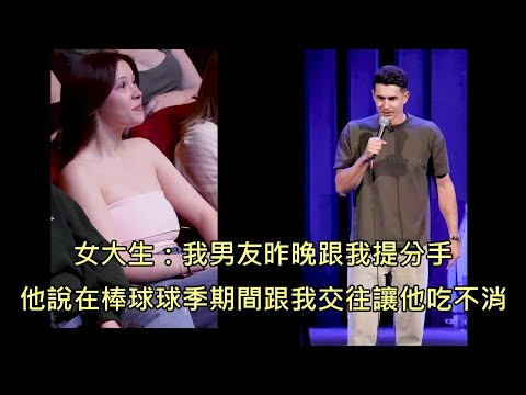 這名女大生去看單口喜劇時,透露熱愛棒球的男友昨晚以「吃不消」為由向她提分手,喜