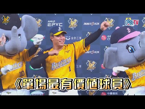 陳大哥子豪 在平手時擊出 致勝2分砲 獲選單場MVP 由應援曲發揚光大者-峮峮頒獎 兩人同台也成為珍貴且難得的畫面 可惜沒有一起合跳世界名曲 日本球迷表示:哪個才是陳子豪? 陳子豪也表示,希望明年也 …
