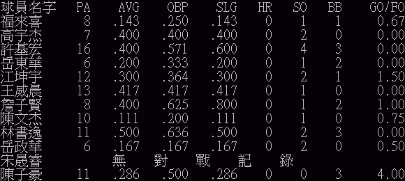 [分享] CPBL挑戰賽G1 對戰數據整理