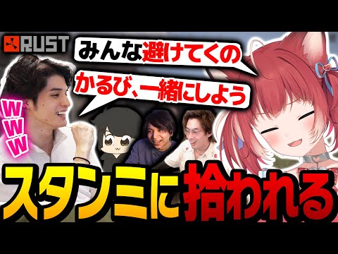 終於被看她可憐的スタンミ撿走。スタンミ就抱著教小孩的心態跟かるび組隊。