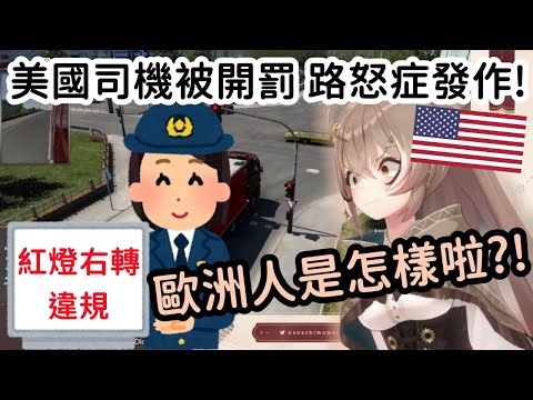 她覺得紅燈右轉算闖紅燈 很吃驚,確實在美國沒特別說 都可以紅燈右轉