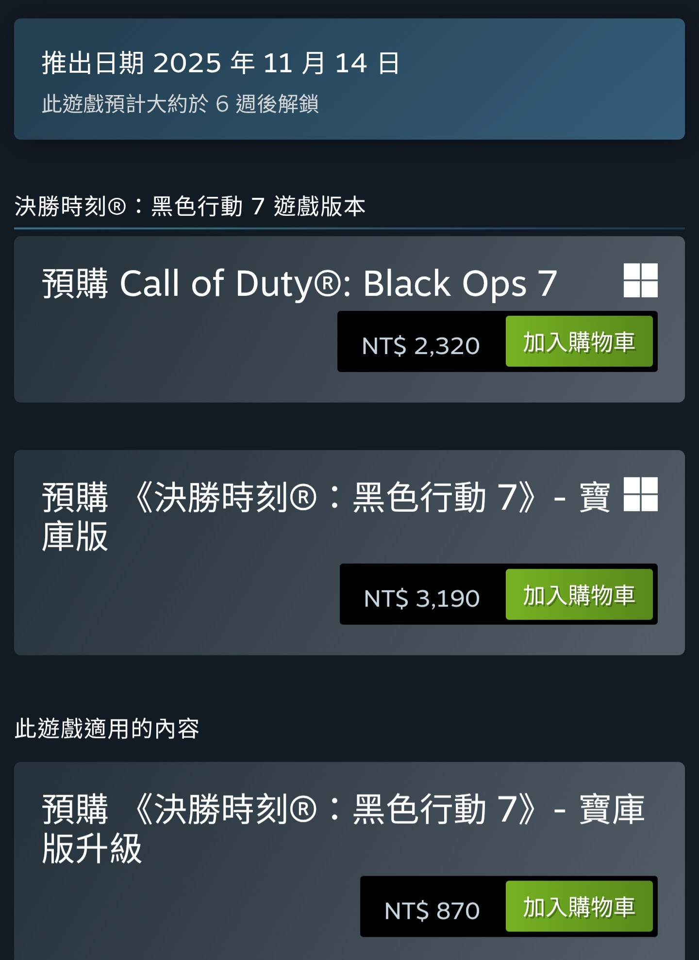 新的COD最近終於開預購了