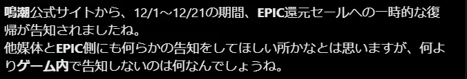 推 apple3924: 重點根本不是優惠,是他突然關掉epic的付費管道吧。如果你在epic只有玩鳴潮,那之前的回饋點數就等同沒用了。40F 10/03 23:57