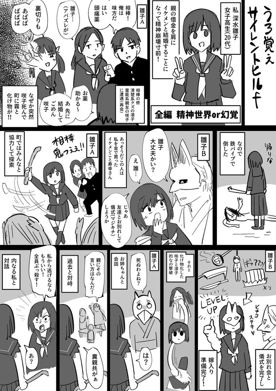 從雛子B中誕生的白色怪物殺了雙親,但是沒死的雛子A,跑進雛子B的世界,然後姊姊當機,