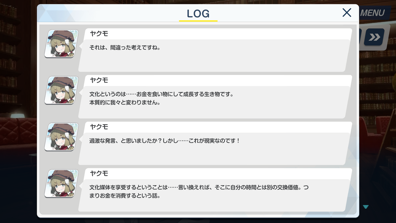 「文化這種東西……是靠吞噬金錢來成長的生物。 本質上和我們沒有什麼不同。」