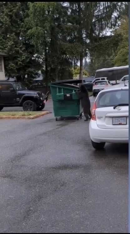 : 以熊的重量,K car 的板金都能輕易壓出凹痕,垃圾回收箱