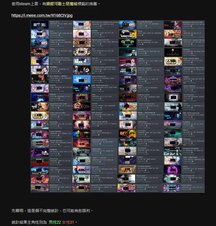 像銀河戰士惡魔城類型的遊戲,以女性為主角的比例超過一半。