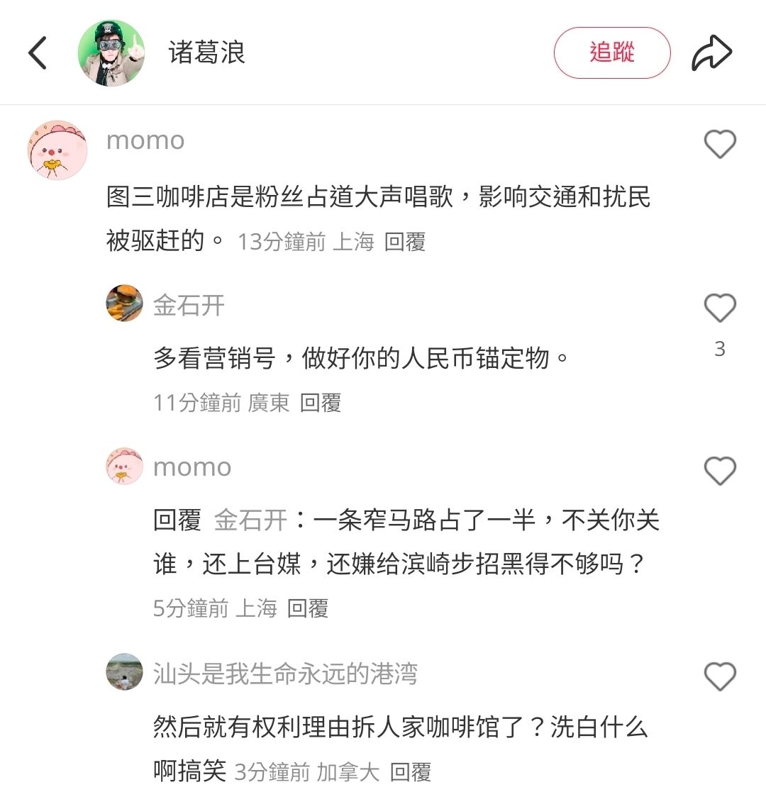 八卦是有人出來洗地了,說咖啡廳是粉絲自營的,而且違章擋路,被檢舉才拆除