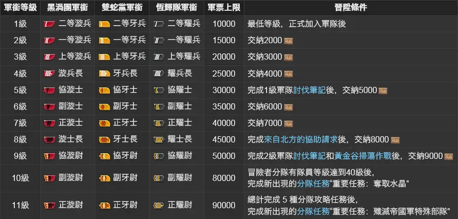 推 DenUsLLeh: 之後可以用軍票換,就是看你加入那個軍隊去打他們的討伐手帳取得4F 12/04 00:12