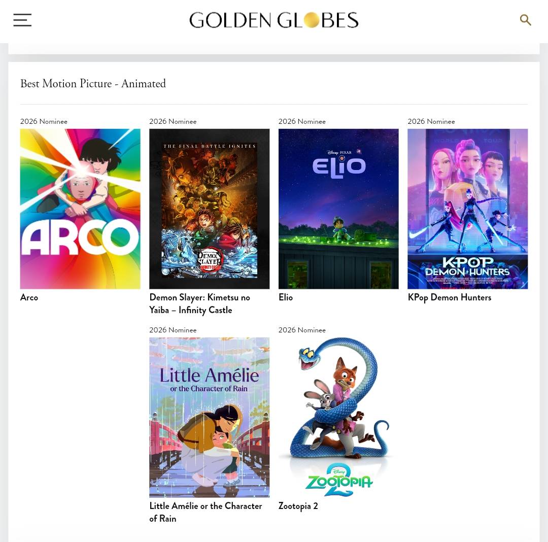 [閒聊] 2026年金球獎提名 最佳動畫名單 - C_Chat 板