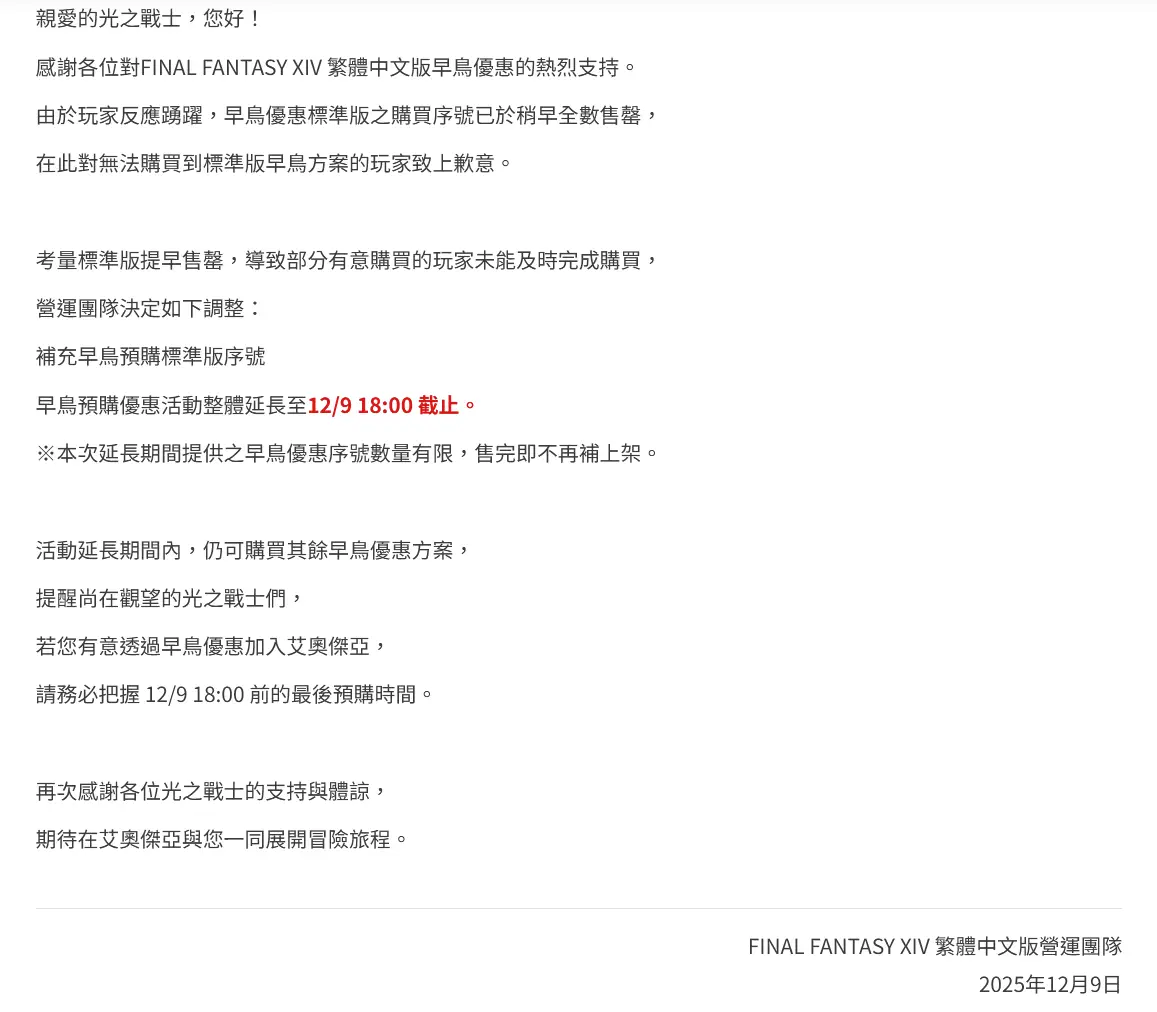 Re: [FF14] 399早鳥包已經賣完了?(早鳥延長到下午六點) - C_Chat 板