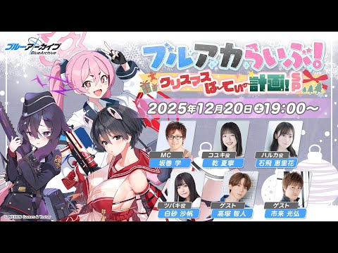 【生放送】 12/20(土)19時~ 「ブルアカらいぶ!クリスマスぱーてぃー計画!SP」配信決定! ▼出演者 #坂巻学 #乾夏寧 #石飛恵里花 #白砂沙帆 #高塚智人 #市来光弘 ▼視聴ページ #ブ …