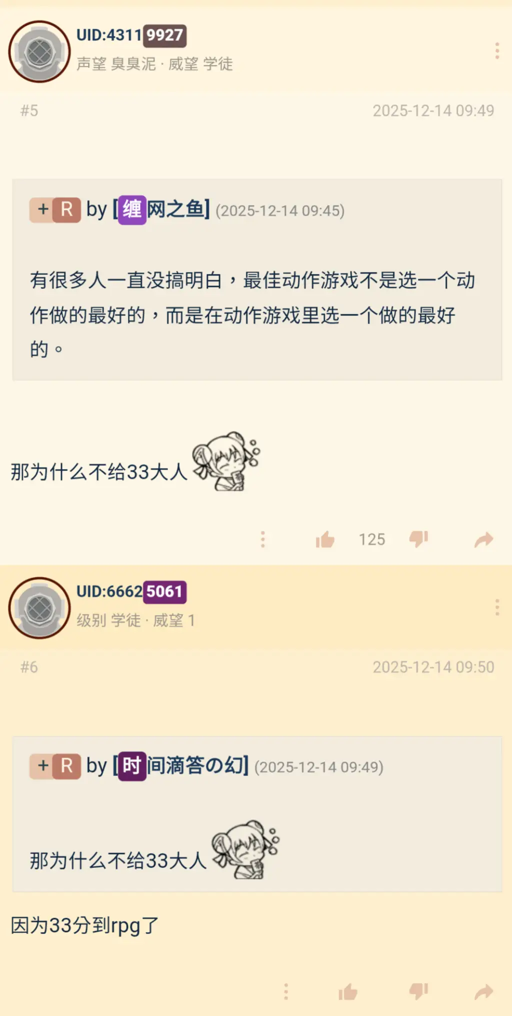作者 greedycyan (巴哈母特大)標題 [討論] TGA動作遊戲獎真的很謎吧?時間 Mon Dec 15 21:36:52 2025