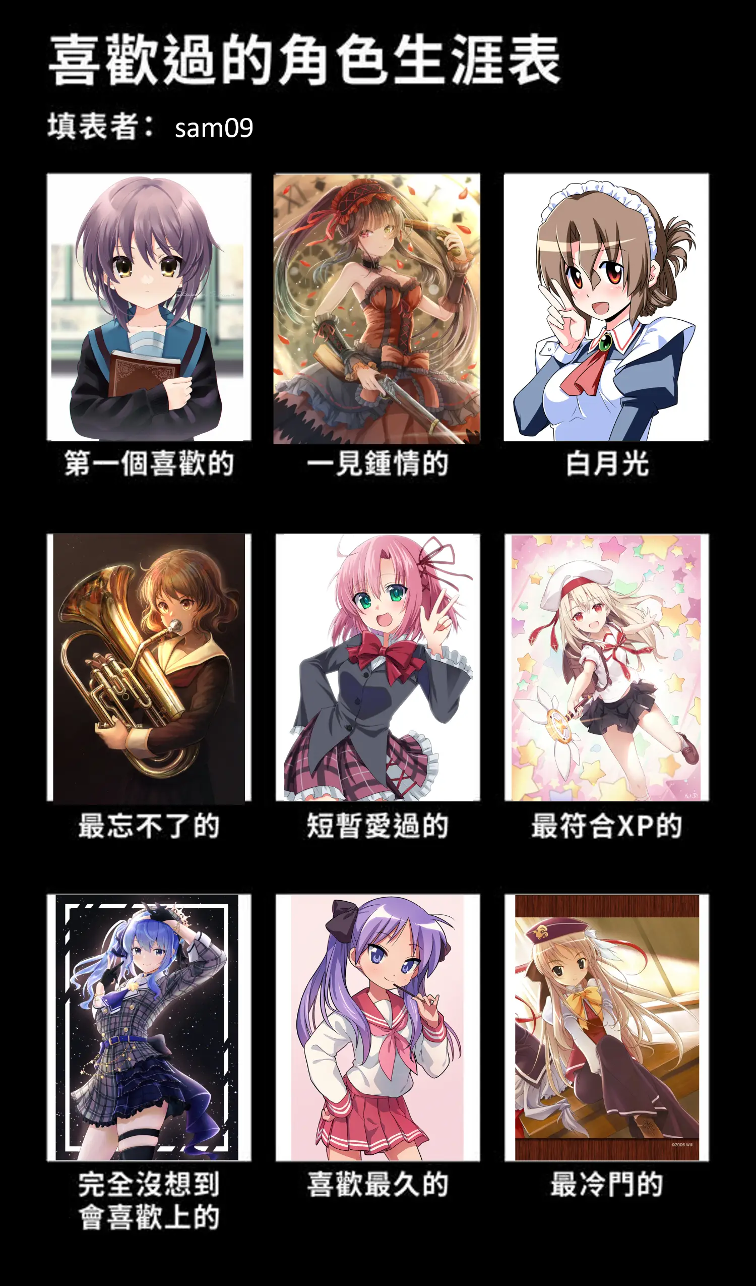 前幾天跟人聊天,他說現在網路上很流行這個「喜歡過的角色生涯表」,我發現隨著年紀