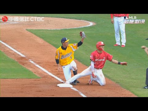 不過天哥停下來折回三壘的時候,看的龍的三壘跑壘教練低頭懊惱的樣子