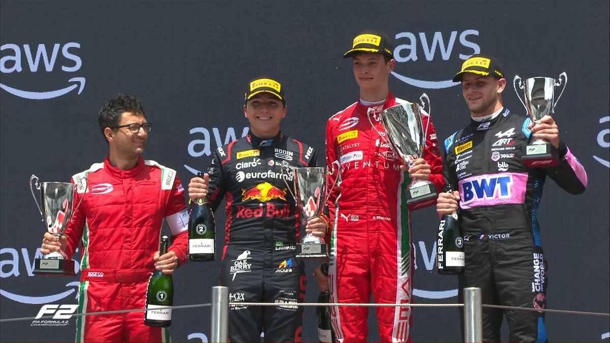 讓 Vesti 上到第一位並在換乾胎後仍能守住跟 Pourchaire 差距到最後衝線奪冠