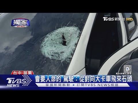 駕駛邱先生:「就對面的大卡車上面,飛來一顆大石頭爆開,爆一個大洞,我整個人傻住