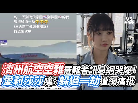 也發生空難,導致179人罹難,當時愛莉莎莎亦在社群上貼出新聞畫面,寫道:「X!一天到