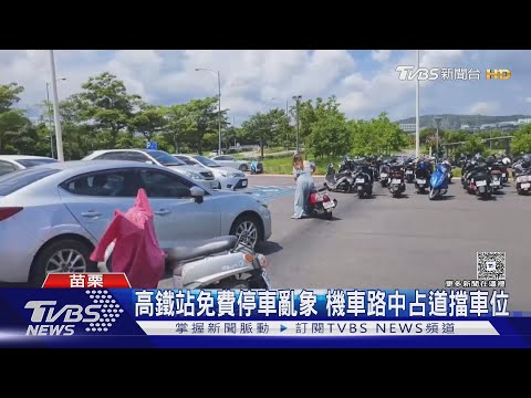 這些亂象主要發生在苗栗高鐵站區的免費停車場。現場可見機車隨意停放在車道正中央,
