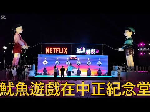 自由廣場的魷魚遊戲娃娃配上音樂及燈光超有感覺的,有沒有自由廣場的魷魚遊戲娃娃配