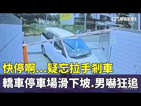 3.完整新聞標題:快停啊...疑忘拉手剎車 轎車停車場滑下坡 男嚇狂追