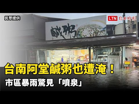 台南阿堂鹹粥也遭淹!市區暴雨驚見「噴泉」