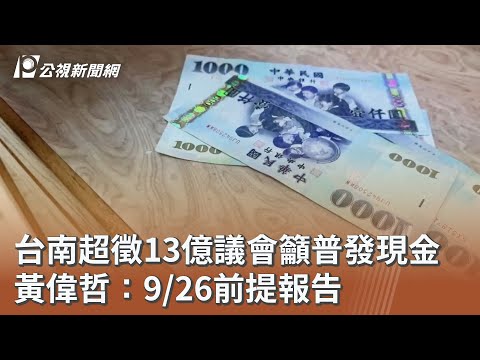 台南超徵13億議會籲普發現金 黃偉哲:9/26前提報告