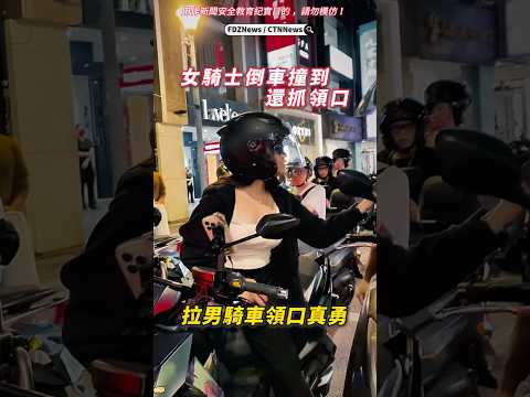 台北市中山北路女騎士倒車出機車格,沒看後方直接撞上騎士,事後不但不道歉,還抓住