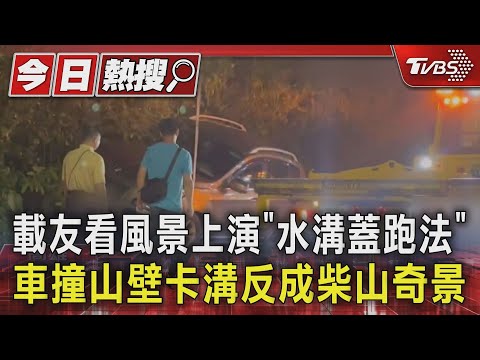 獨/載友看風景上演「水溝蓋跑法」 車撞山壁卡溝反成柴山奇景│TVBS新聞網