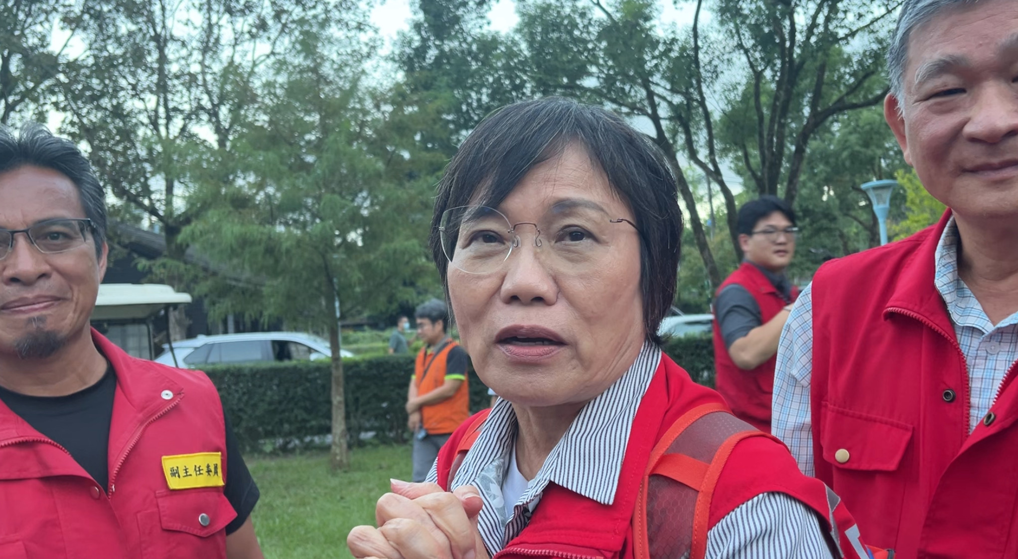 往中央應變中心前進協調所協調工作,她一下車,中央災害應變中心前進協調所總協調官