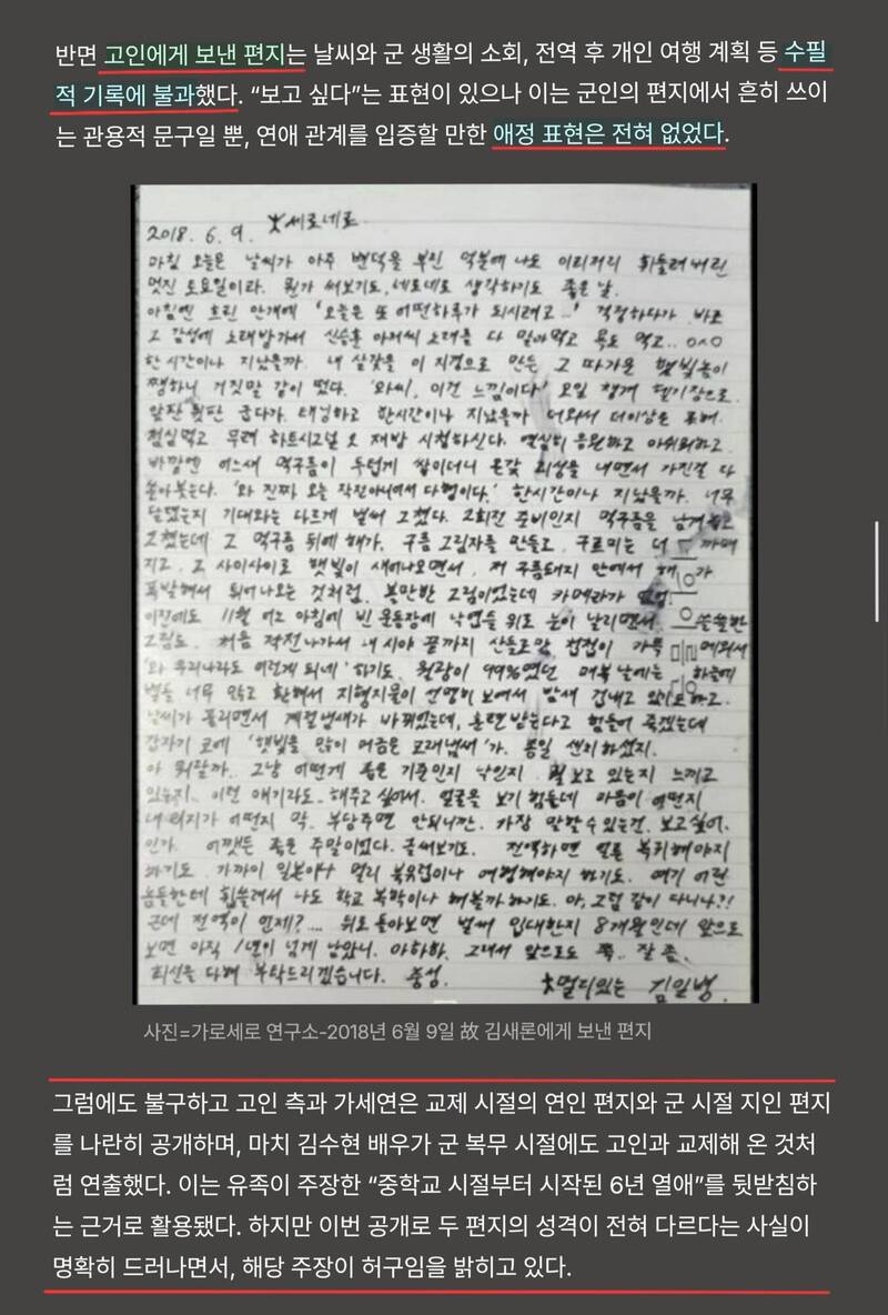 秀賢在金賽綸尚未成年時進行交往,並提出金秀賢當兵時所寫情書作為佐證。