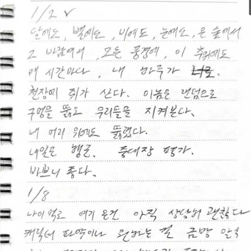 年。從金秀賢提供的手稿當中,可見記錄著對戀人的思念、歉意以及戀愛時的濃情密意還