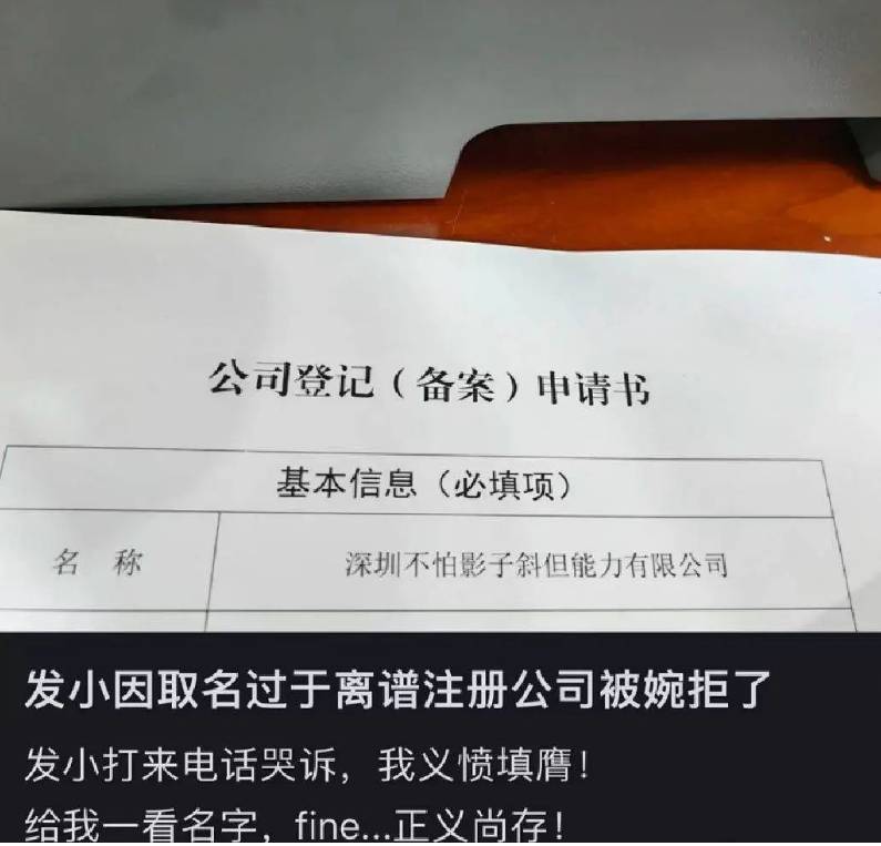 發現一家公司申請名字叫「深圳不怕影子斜但能力有限公司」
