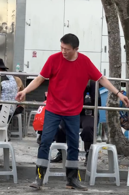透過網友在Threads分享的影片畫面可見到,秦楊上半身穿著一件紅色短袖上衣,下半身