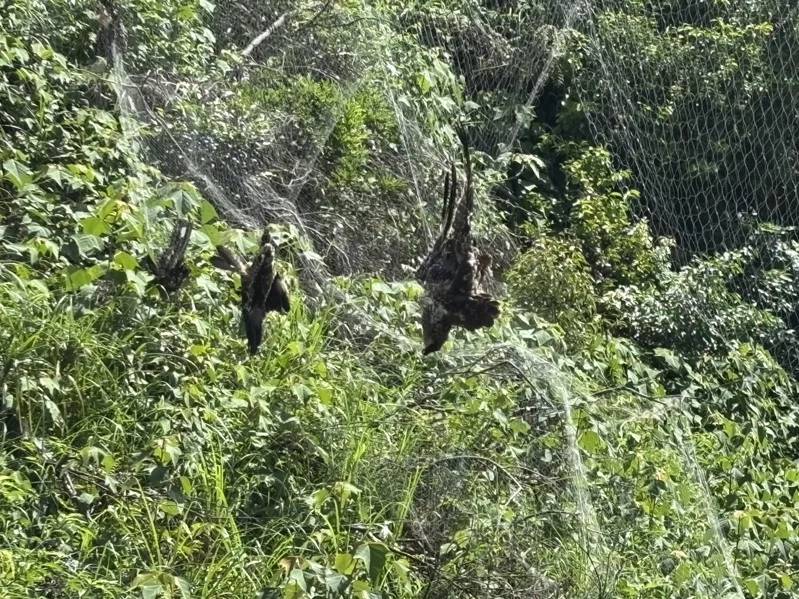 基隆驚見4隻黑鳶同時掛網慘死 七堵山區非法鳥網逾百公尺