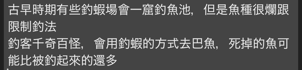 → MeiHS: 文中就提到釣蝦是類似的 是室內釣魚==8F 1.169.97.34 台灣 10/06 01:09