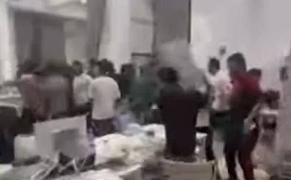 ▲眾人集體衝進辦公區和宿舍區一路狂砸 。(圖/翻攝自YouTube/柬中時報)