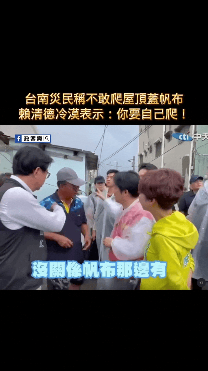 作者 CREA (人間不信)標題 [新聞] 黃國昌指賴清德要災民爬屋頂 民進黨:不實言論撕裂台灣時間 Thu Oct 9 22:59:21 2025