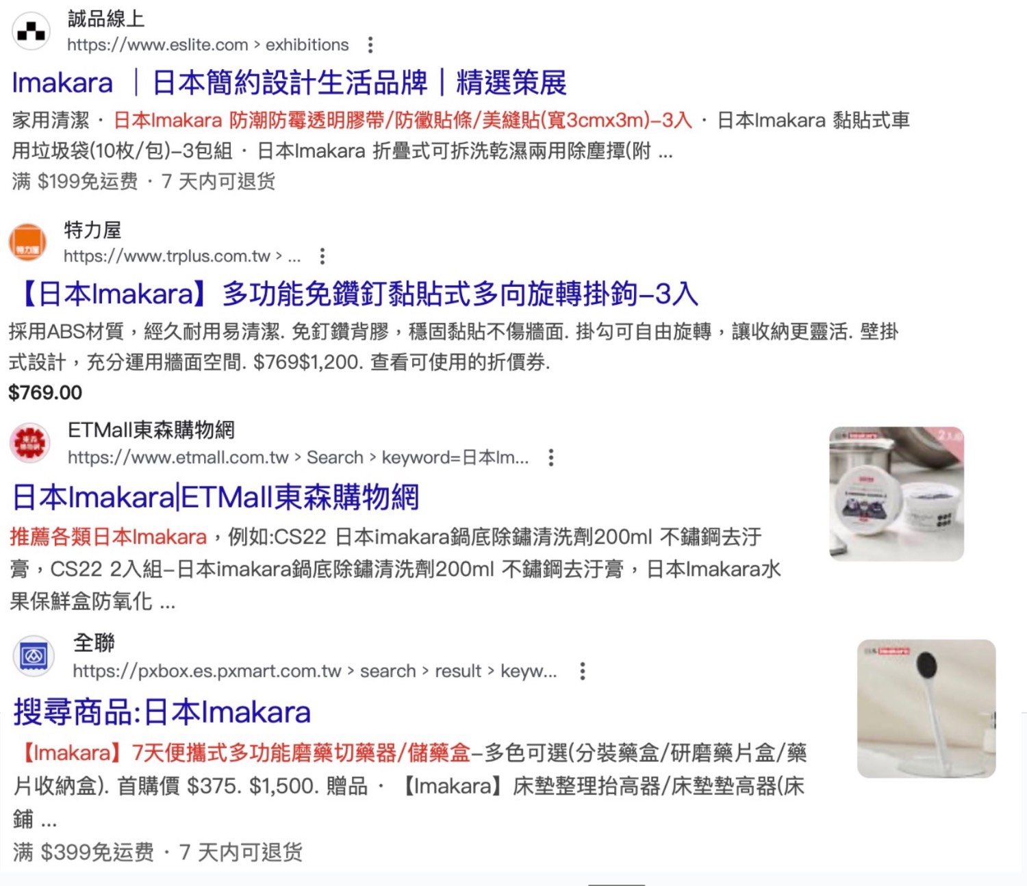 但誠品、特力屋、東森、全聯都特別強調是「日本 Imakara」