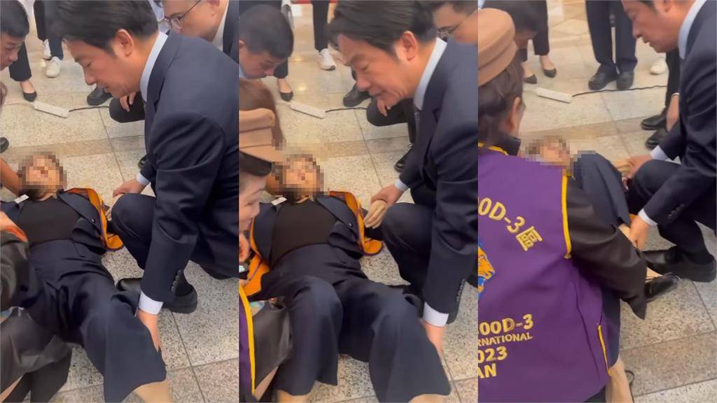 : 合照期間突然暈倒、見到此情況的總統賴清德一個箭步、立刻上前蹲下身查看獅姐狀態