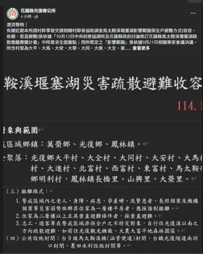 Re: [新聞] 花縣府爆「10/13補簽9/21撤離造冊」 光復鄉民怒批偽造文書