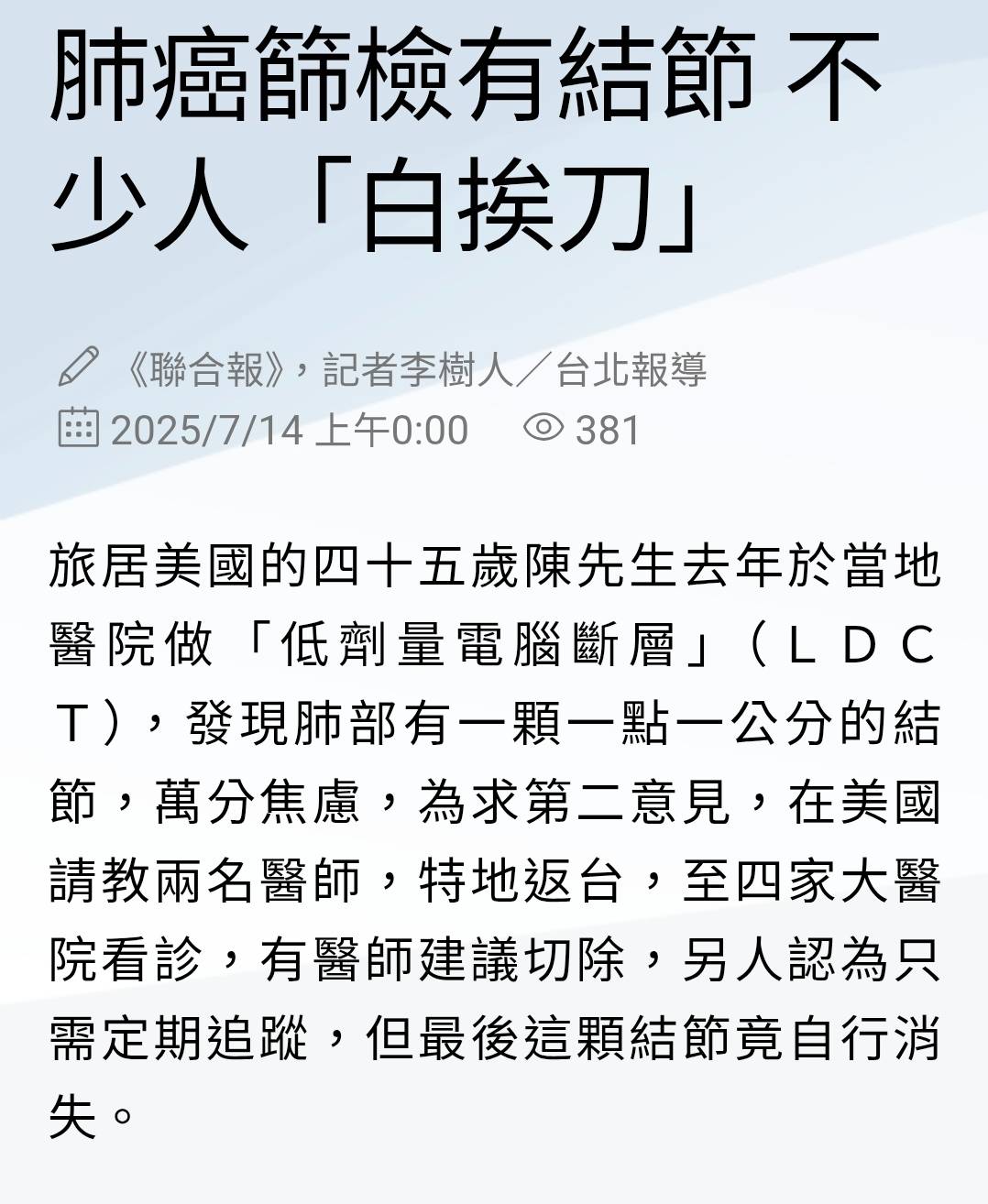 [問卦] 肺腺癌無聲無息 你們有打算去照CT嗎?