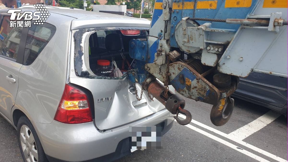 小客車後車尾毀損。(圖/TVBS)