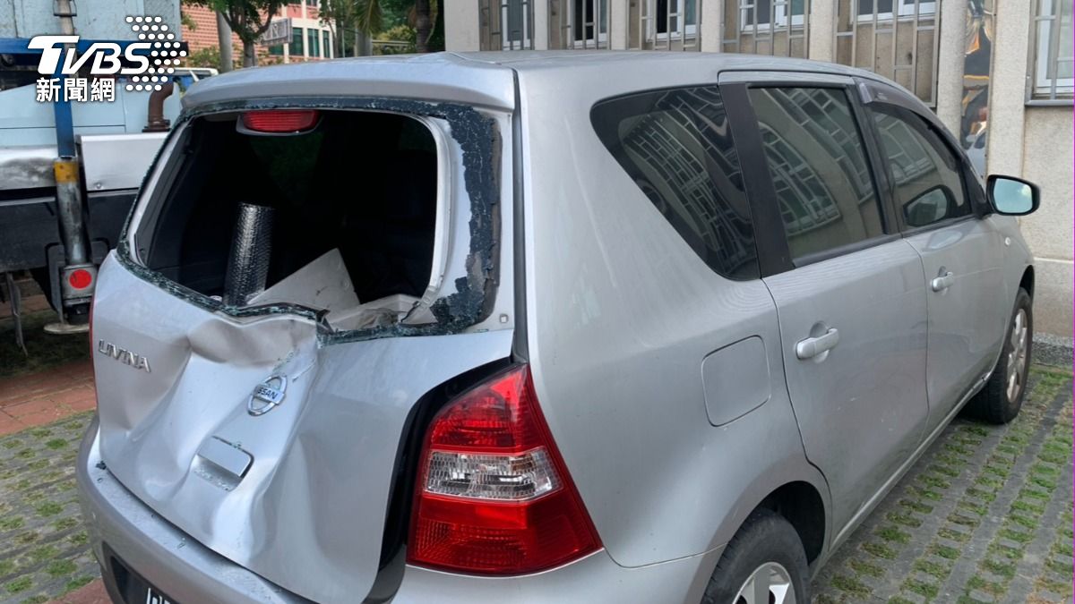 ,導致小客車的後擋風玻璃當場碎裂,所幸車上皆無人傷亡。