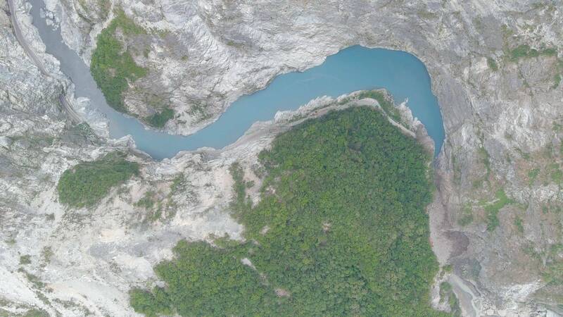 燕子口步道上方崩塌形成立霧溪堰塞湖。(公路局提供)